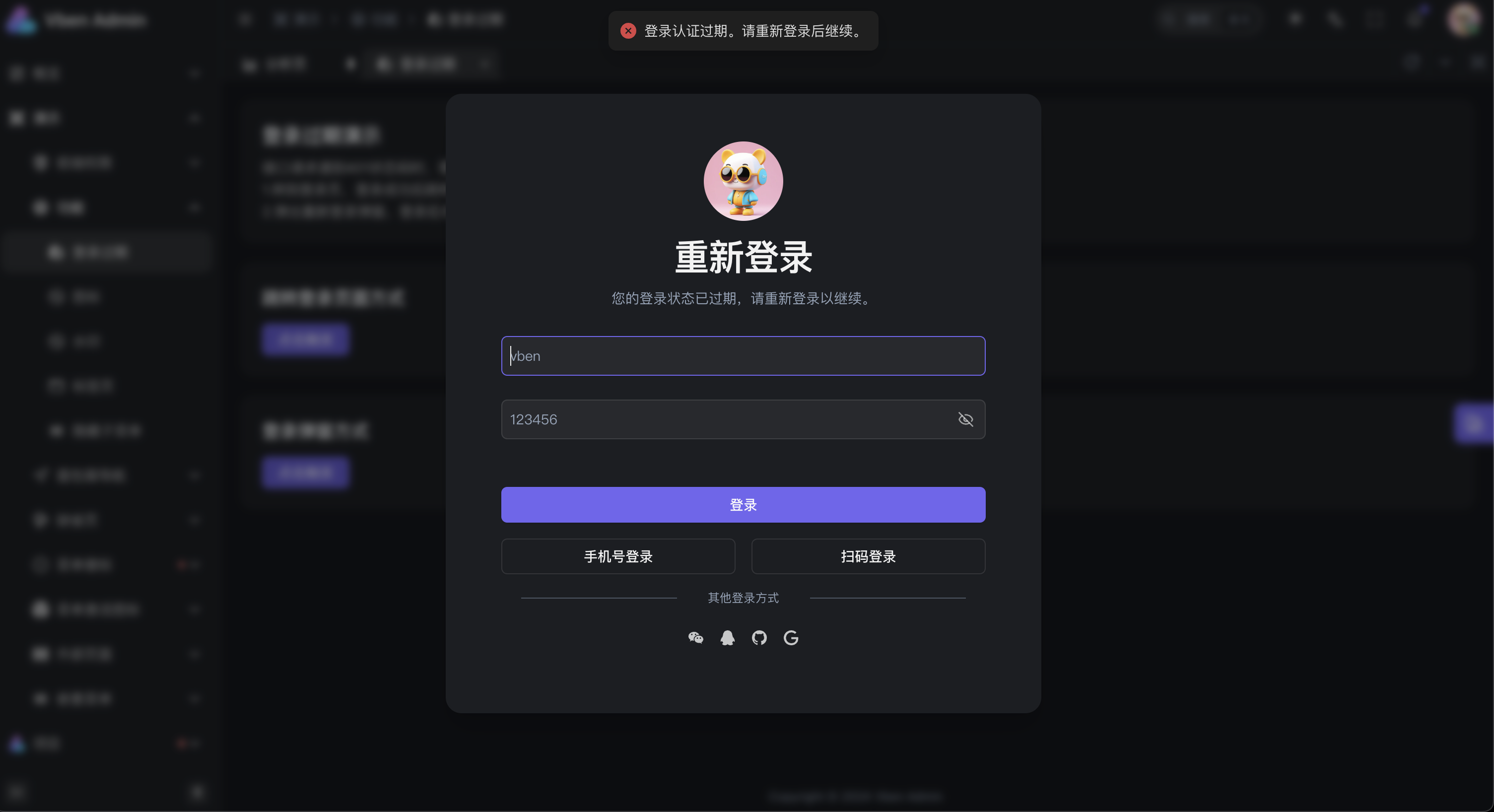 loginExpiredMode: 'modal',